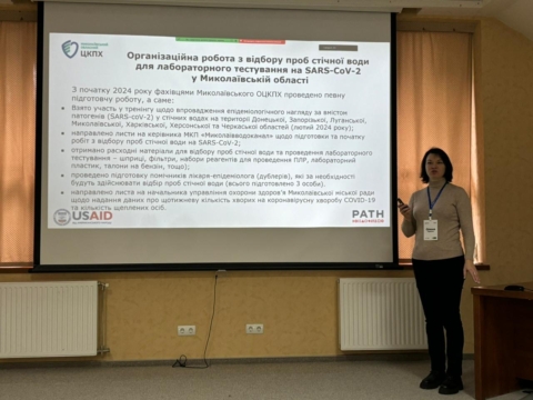 Фахівці з МОЦКПХ представили на тренінгу презентацію на тему: «Досвід впровадження епідеміологічного нагляду за стічними водами у Миколаївській області: досягнення, виклики та подолання труднощів», поділившись власними напрацюваннями та здобутками в цій сфері.