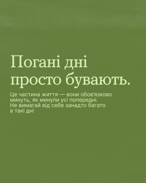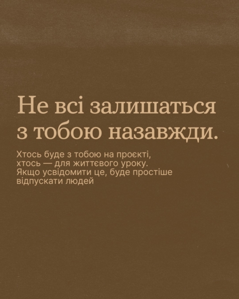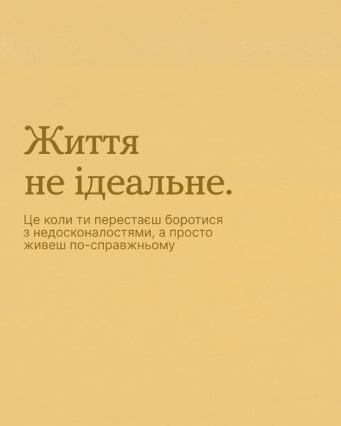 Гортай карусель, щоб не чекати, коли люди стануть зручними, дні — продуктивними, а світ — передбачуваним та ідеальним.
