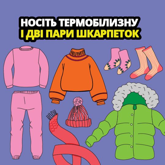 Одягайтеся багатошарово (наприклад, на термобілизну вдягніть флісову кофту, зверху — вовняний светр).