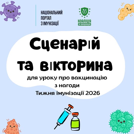 Долучайтесь до Тижня імунізації-2026: за посиланням завантажуйте запропоновані матеріали та використовуйте їх для проведення тематичних уроків у своєму навчальному закладі!